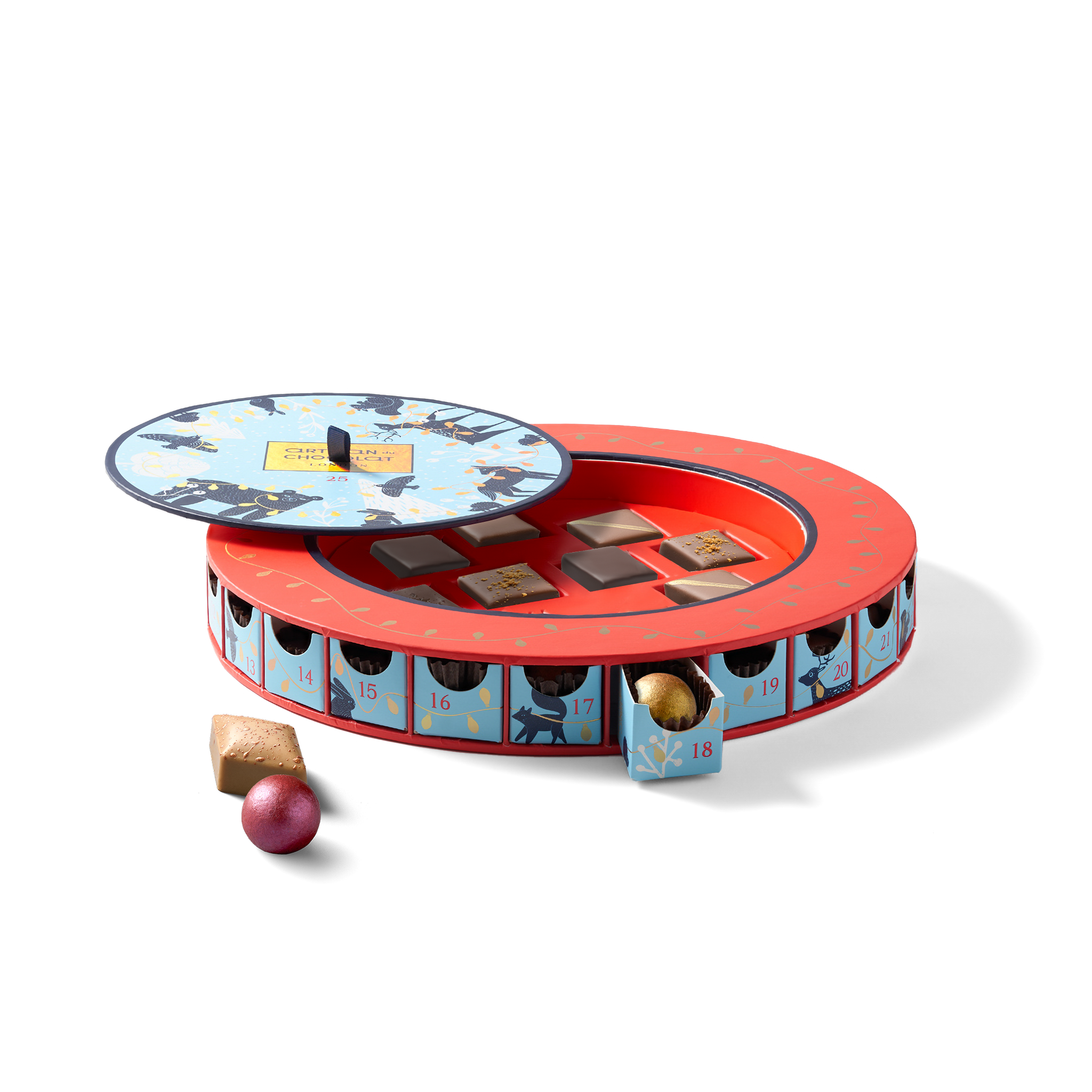 Our signature advent calendar is composed of 25 drawers filled with our new couture chocolates, pearls salted caramels, truffles and more. Much more actually with a hidden box of truffles to share on Christmas day.